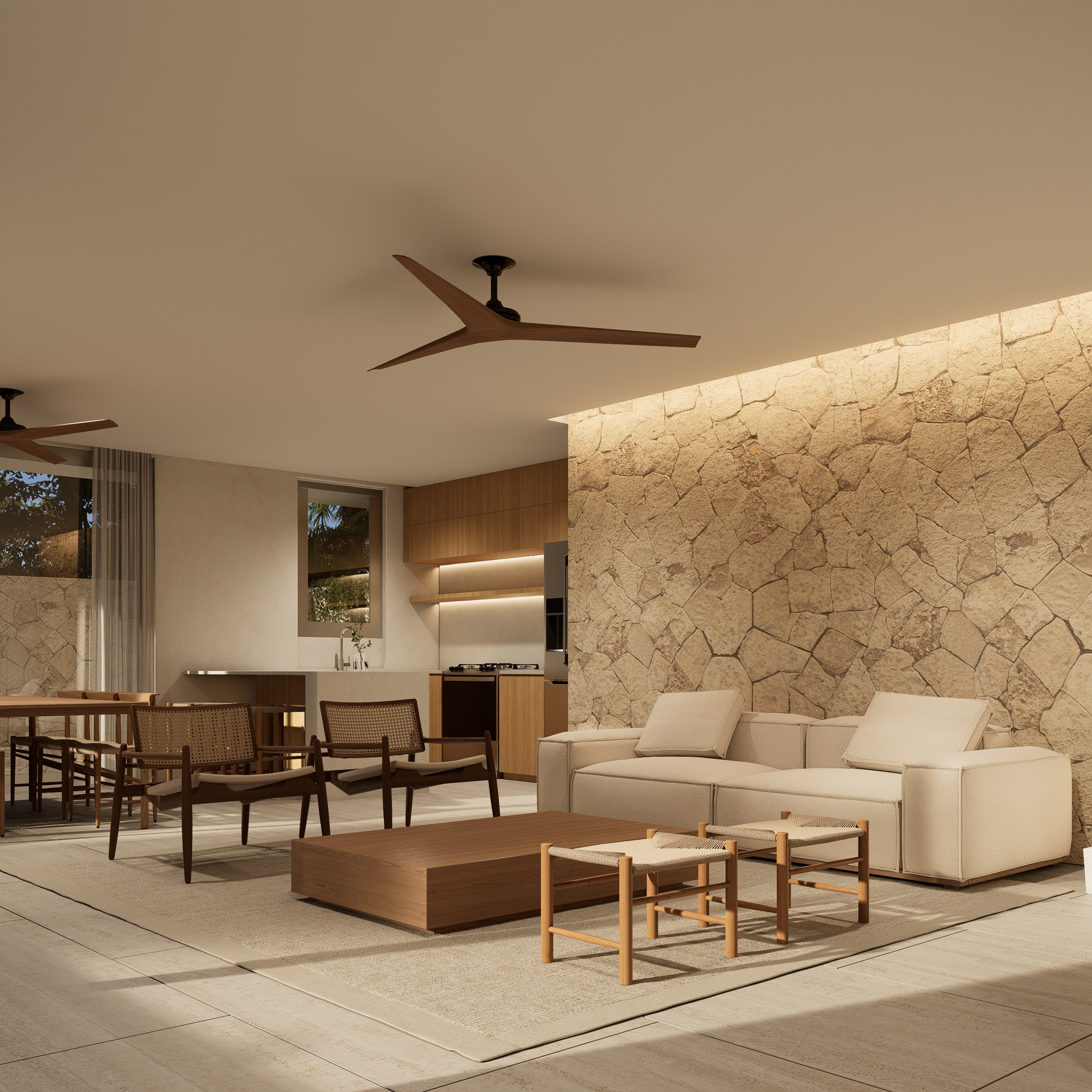 Open-concept social area fully integrated with the outdoors: